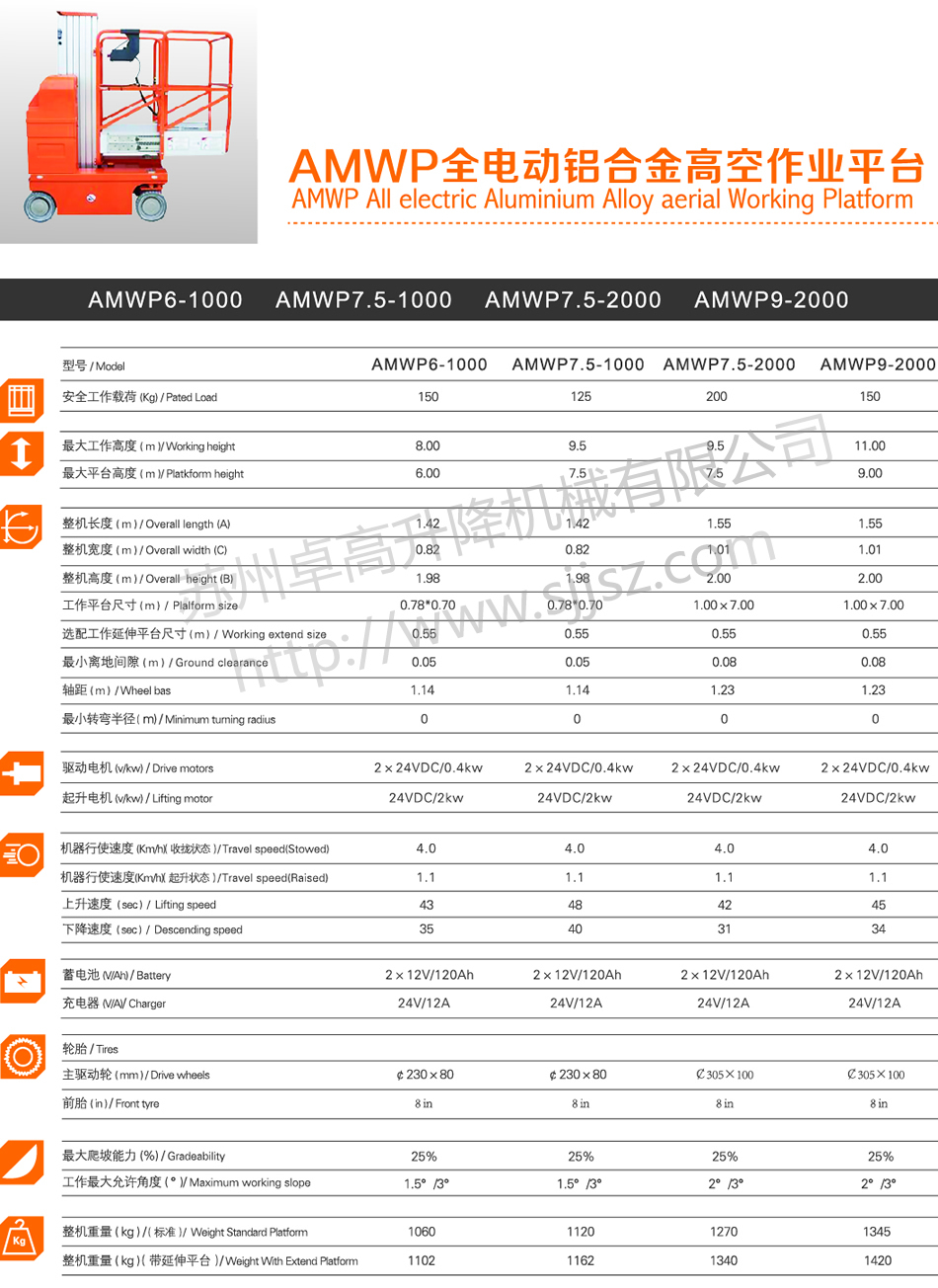 AMWP全電動(dòng)鋁合金高空作業(yè)平臺(tái)